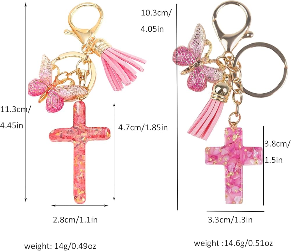 • 【هدايا دينية للنساء】تتميز سلسلة المفاتيح المصنوعة من الراتنج والسبائك المصممة بأناقة بصليب رقيق وفراشة وشرابة مع مشبك على شكل سرطان البحر. مشرقة ولامعة يمكن أن تجذب عينيك. صليب يرمز إلى الأمل والنمو الروحي، مثالية للهدايا الدينية والديكور المسيحي.