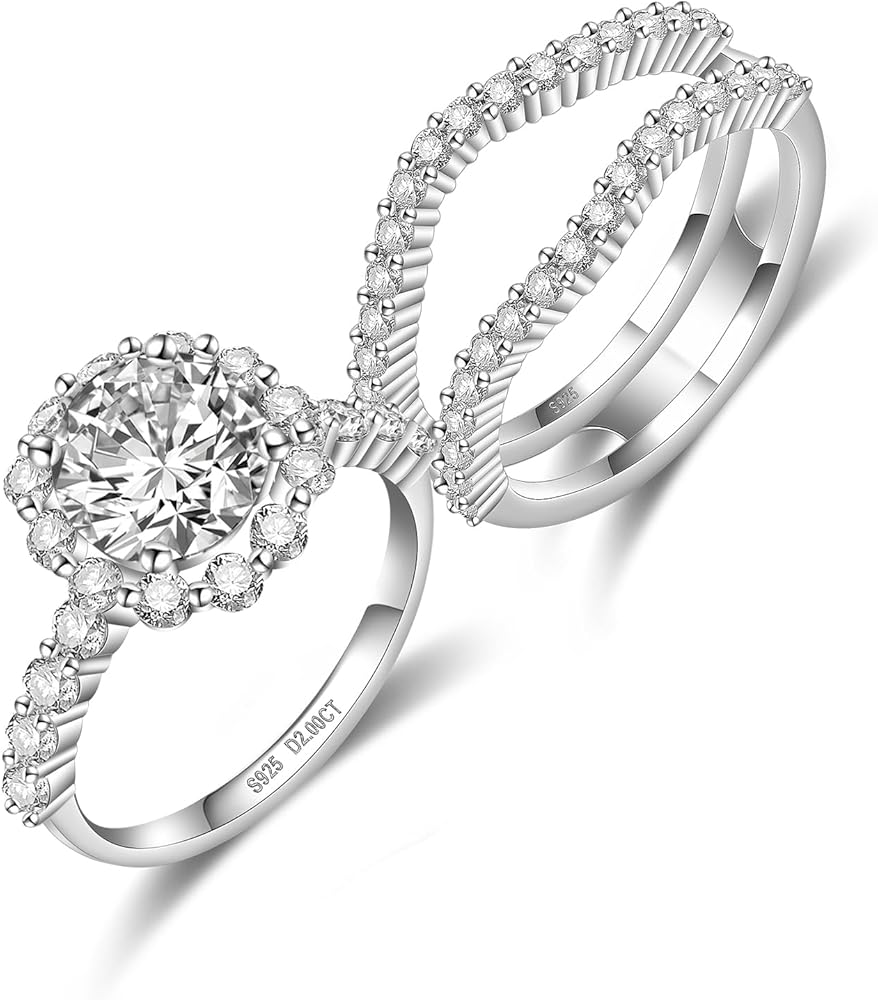 【فضة استرلينية 925 وحرفية ممتازة】مجموعة خواتم الزفاف المويسانتي هذه مصنوعة من الفضة الإسترلينية عيار 925 الصلبة، مختومة S925، طلاء عالي الجودة من الذهب الأبيض عيار 18 قيراط (0.1 مل البلاديوم و0.05 مل الروديوم). مصقول بدرجة عالية، ومقاوم للصدأ بدرجة عالية، وليس من السهل تشويهه وبهتانه، ولا يسبب الحساسية بنسبة 100%، وخالي من الرصاص والنيكل، وحواف ناعمة، ولن تخدش الجلد أو الملابس.