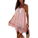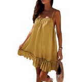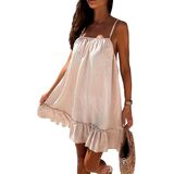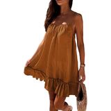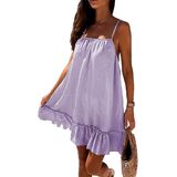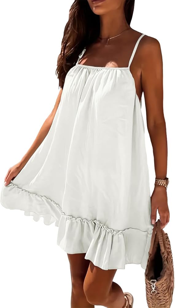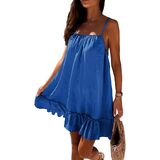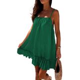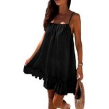 المزايا: فستان صيفي، كاجوال، سادة، بدون أكمام، فضفاض، فساتين قصيرة، فستان قصير، حزام سباغيتي، بدون ظهر، منزلق.