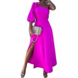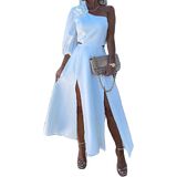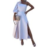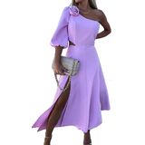 Womens Sexy Long Sleeve One Shoulder 3D Flower Bodycon Split Solid Party Clubwear Dress