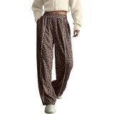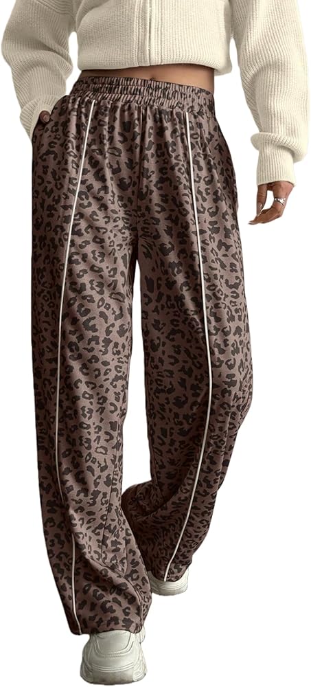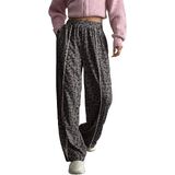 Women's Sweatpants Wide Leg Color Block Leopard Print Patchwork Elastic Waist Casual Sports Joggers with Pockets
