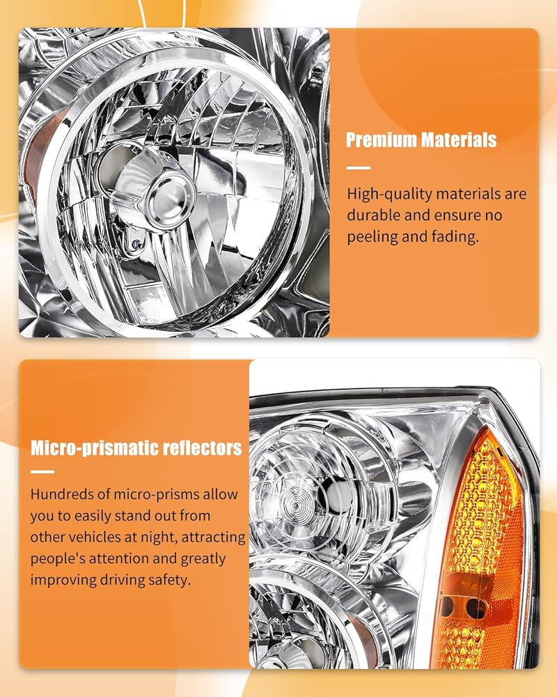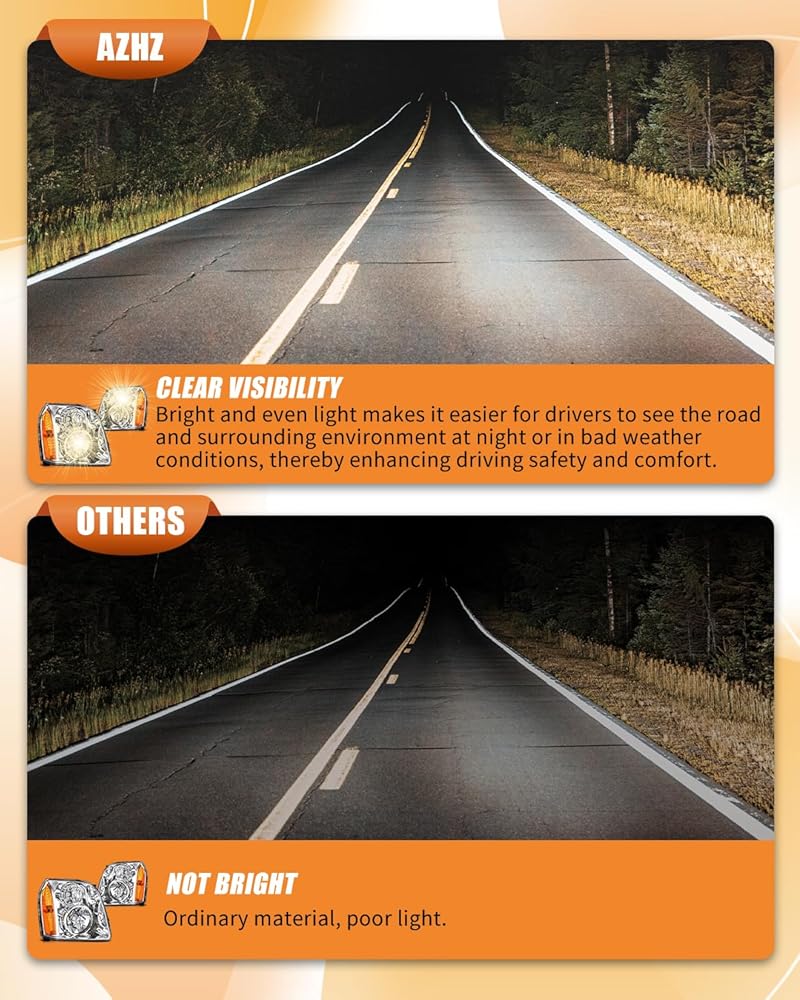 • إضاءة أكثر سطوعًا - - تعمل عاكسات المنشور الصغير الجانبية ولمسة نهائية من الكروم على زيادة انعكاس الضوء، مما يسهل على المركبات القادمة ملاحظتك في الليل. إضاءة الطريق أمامك بوضوح ودقة، مما يعزز الرؤية والسلامة في الليل، مما يمنحك تجربة قيادة أكثر أمانًا وراحة