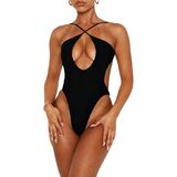 VnimVinter Women Sexy One Piece Swimsuit Criss Cross Halter Neck Backless Cutout Bathing Suit High Cut Cheeky Monokini