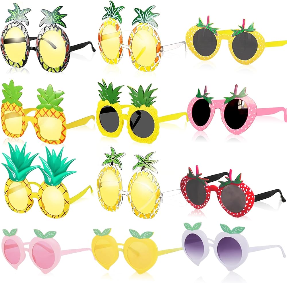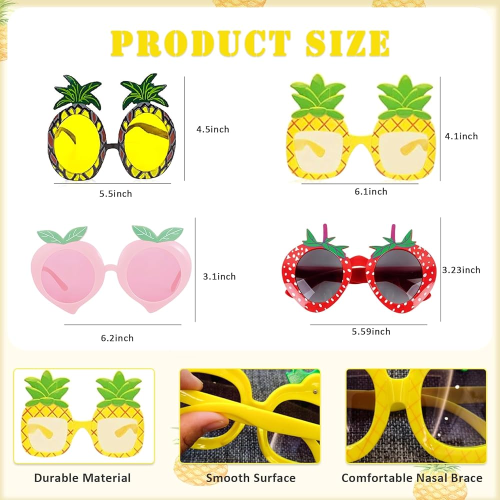 The vibrant and detailed fruit designs (including Pineapple,Strawberry, Peach) create eye-catching Hawaiian sunglasses styles that are perfect for themed decorations and memorable group pictures.