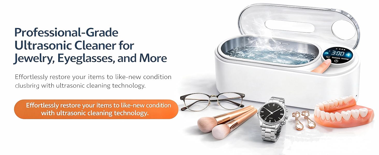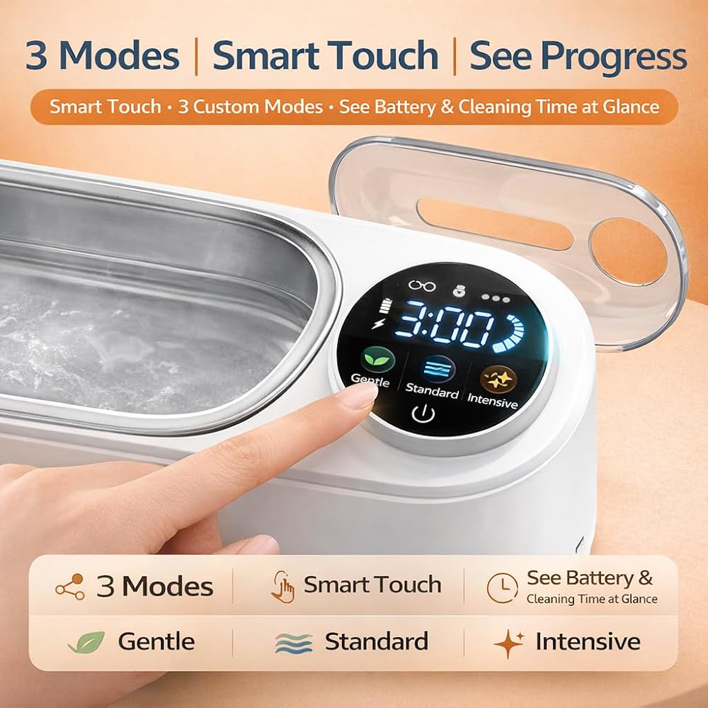 تنظيف عميق قوي 48 كيلو هرتز - شاهد الفرق في دقائق تعمل الموجات فوق الصوتية المتقدمة 48 كيلو هرتز على إنشاء ملايين من الفقاعات الدقيقة عالية الطاقة التي تخترق الشقوق بعمق، وتزيل الأوساخ العنيدة والزيوت والبقايا التي تتركها المنظفات العادية وراءها. يستعيد اللمعان والوضوح بسرعة - بدون فرك أو ضرر