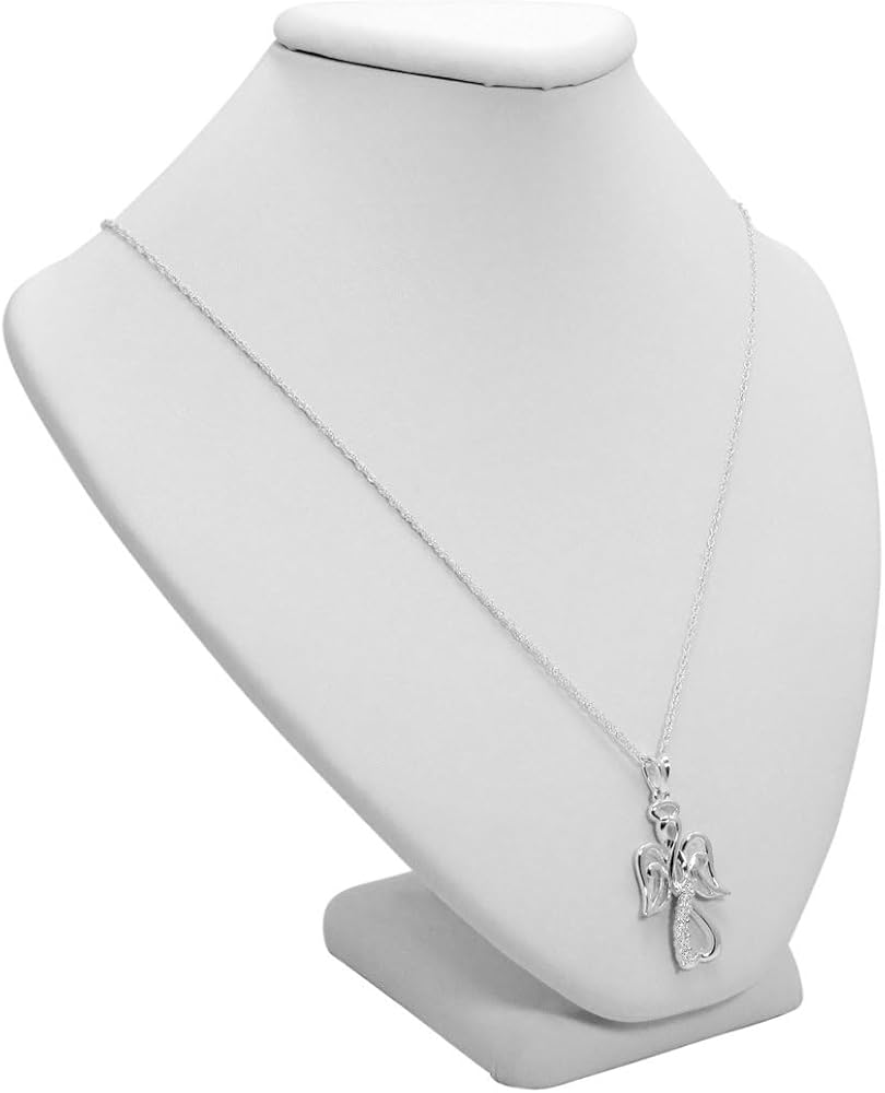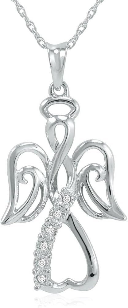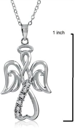 قلادة Angel من الفضة الاسترليني وسلسلة مقاس 18 بوصة، مميزة بعلامة 925 ومزينة بالألماس الحقيقي الحقيقي.