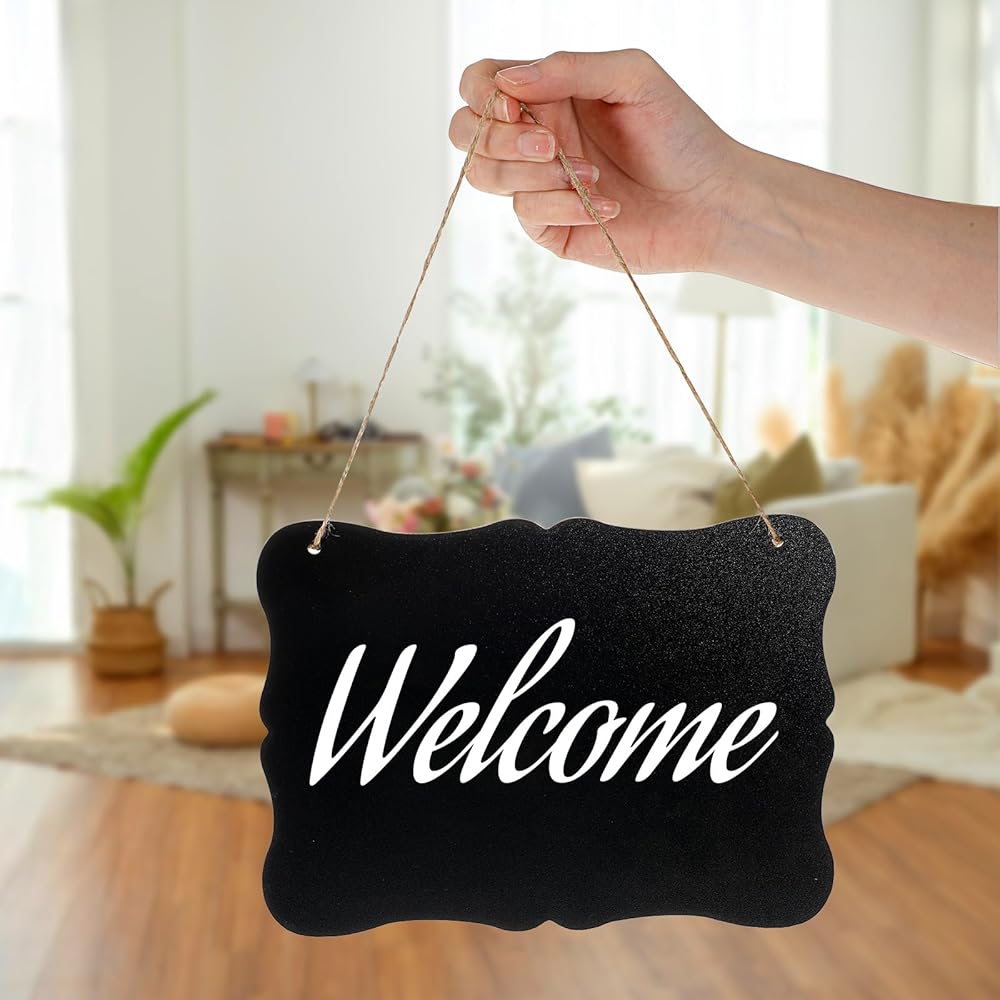 【Smooth Writing Easy Erasing Surface】 Enjoy seamless writing experience on this premium small hanging chalkboard signs that accepts standard chalk beautifully and wipes clean effortlessly leaving no ghosting for repeated daily use. Small chalk board with chalk sign double - sided and fully - erasable feature, you can use chalk or liquid chalk to write whatever you like. Erase with a cloth or damp sponge, and it's ready for a new message