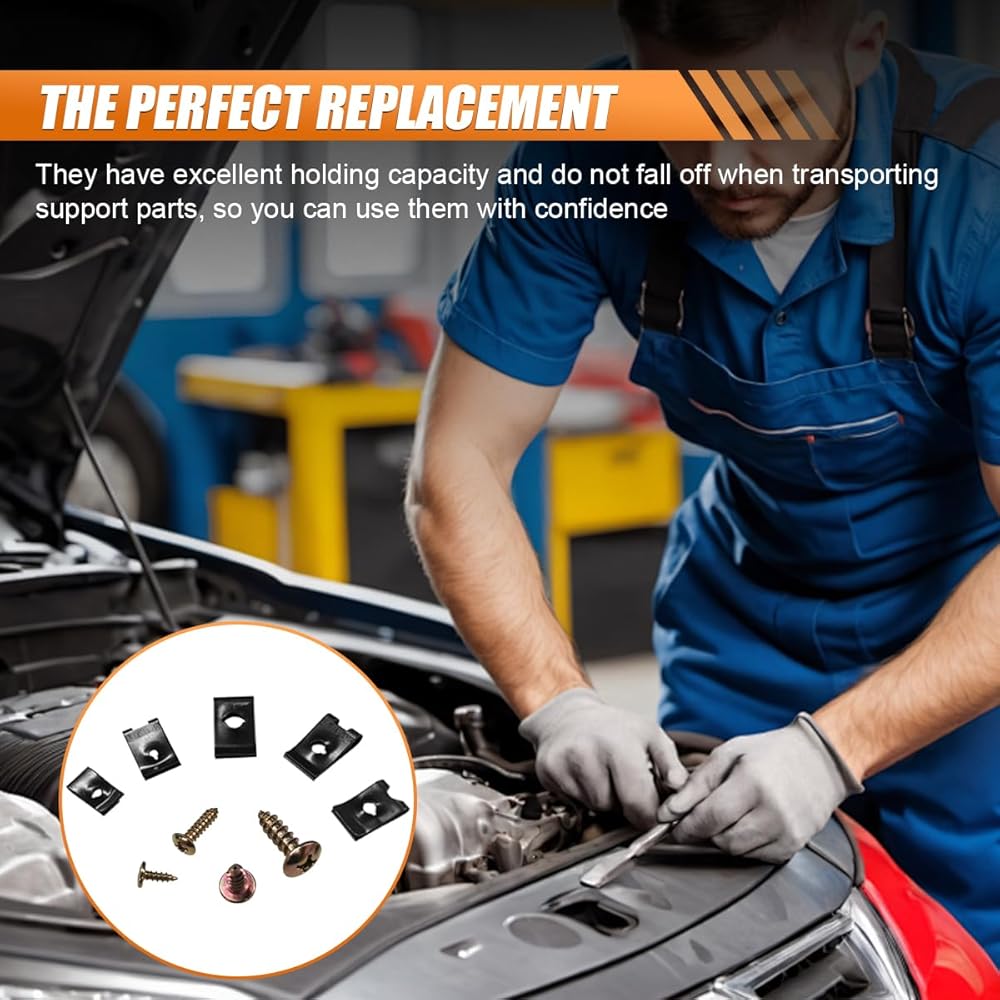 【Great Replacement】: The car u-clips and screws can be used as a replacement for U-shaped clamps and screws in automobiles, specifically designed to replenish the corresponding parts that are lost or damaged on the vehicle. It can be directly adapted to the original installation position for convenient assembly and is a reliable accessory in automotive maintenance scenarios.