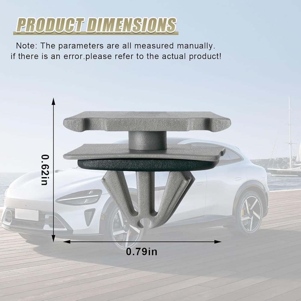 【Size】:The upper and lower head dimensions of the car clips are approximately 12mm × 20mm, with a shaft length of approximately 11mm. It is suitable for a 9mm hole diameter and can tightly adhere to vehicle trim strips to meet vehicle installation requirements.