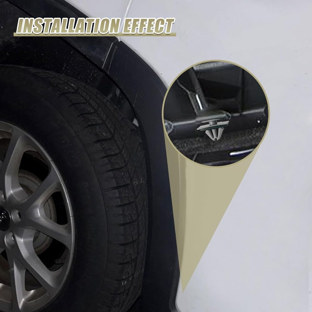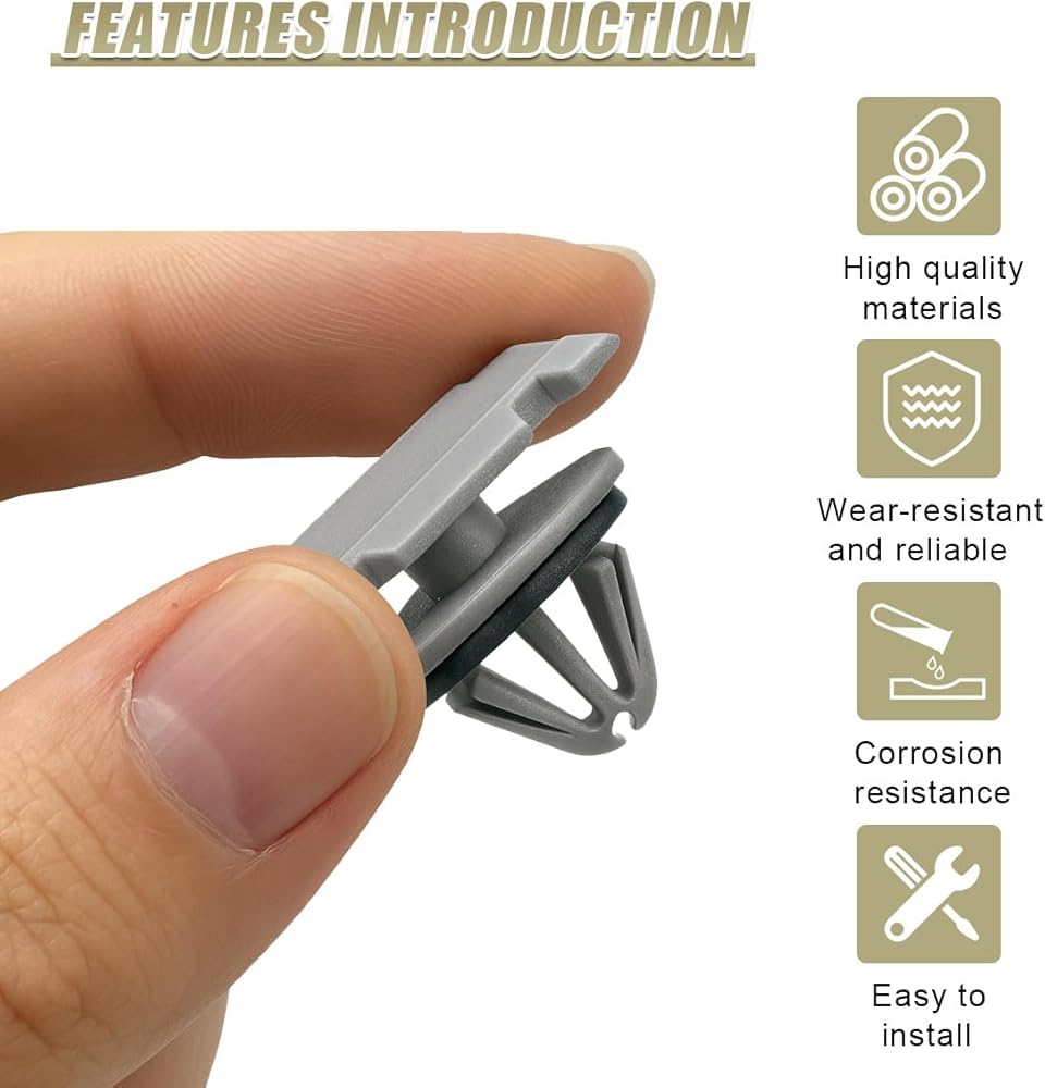 【Material】:The rocker wheel flare moulding clips are made from high-quality POM material, featuring high strength and hardness, wear resistance, impact resistance, and corrosion resistance. It is sturdy and reliable, maintaining its shape and integrity over time, ensuring long-term stable performance in securing applications.