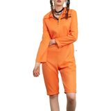 High-Quality Material: This Halloween orange prisoner costume jumpsuit is made from high-quality, durable material that is comfortable to wear all night long. The fabric is soft and breathable, ensuring that you can move around freely without feeling restricted.