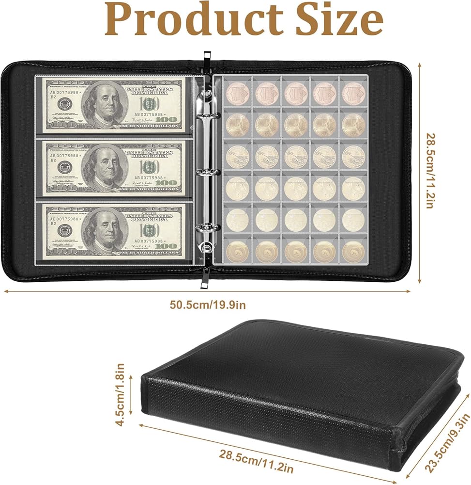 • ipper Design: Our coin holders for collectors feature a smooth zipper design, effectively preventing accidental spills and coin loss. The coin collector book allows you to store coins without worrying about them falling out, and can also securely store other items