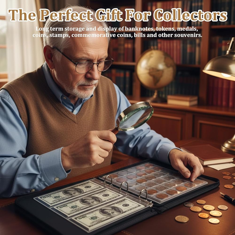 • Wide Applicability: This coin collection book is ideal for collectors, suitable for storing coins, banknotes, pennies, stamps, badges, etc. Additionally, this coin collector gift makes a thoughtful present for family, friends, and colleagues who share a passion for collecting