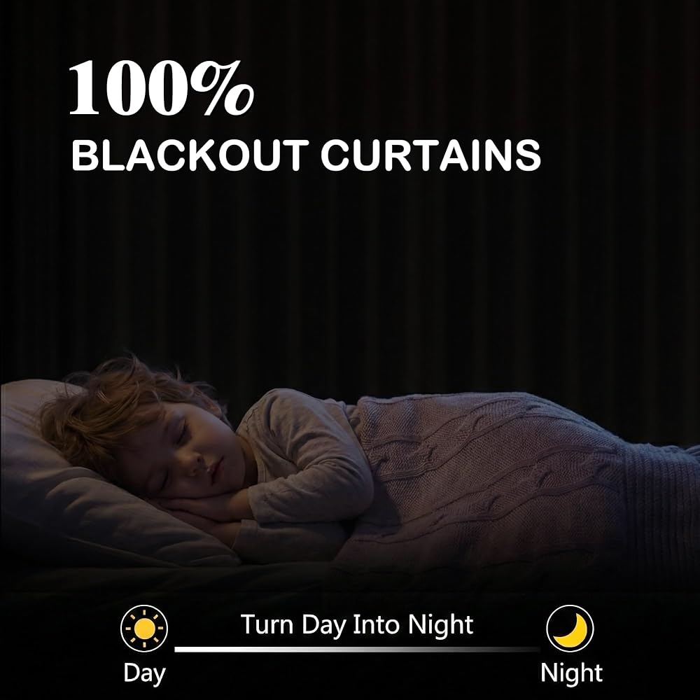 حماية كاملة من التعتيم والأشعة فوق البنفسجية بنسبة 100%: استمتع بالظلام الحقيقي مع ستائر التعتيم هذه بنسبة 100%. تحجب البطانة المخصصة عالية التحمل أشعة الشمس بنسبة 100% والأشعة فوق البنفسجية الضارة، مما يجعلها ستائر مثالية لغرفة الأطفال أو ستائر معتمة لغرفة النوم. إنها تحمي الأثاث الخاص بك بشكل فعال من البهتان مع توفير بيئة حجب الضوء القصوى للنوم العميق.