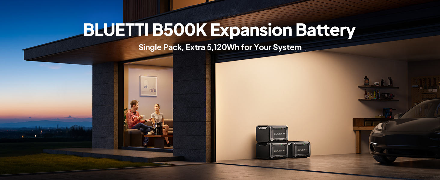 [نظام الاستخدام البيئي] - بالإضافة إلى توسيع السعة، يعمل B500K مع ملحقات BLUETTI للشحن والتفريغ متعدد الاستخدامات: SolarX 4K (4000 واط)، شاحن المولد (560-1000 واط)، Hub D1 (700 واط DC)، والملحقات المستقبلية.