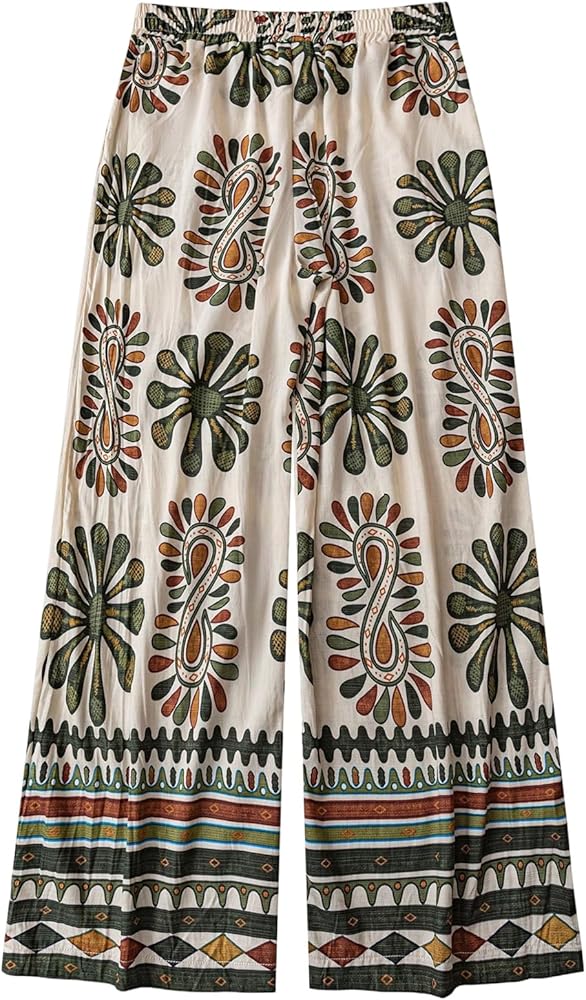 • Women's printed palazzo pants, elastic waist wide leg trousers, boho chic lounge pants