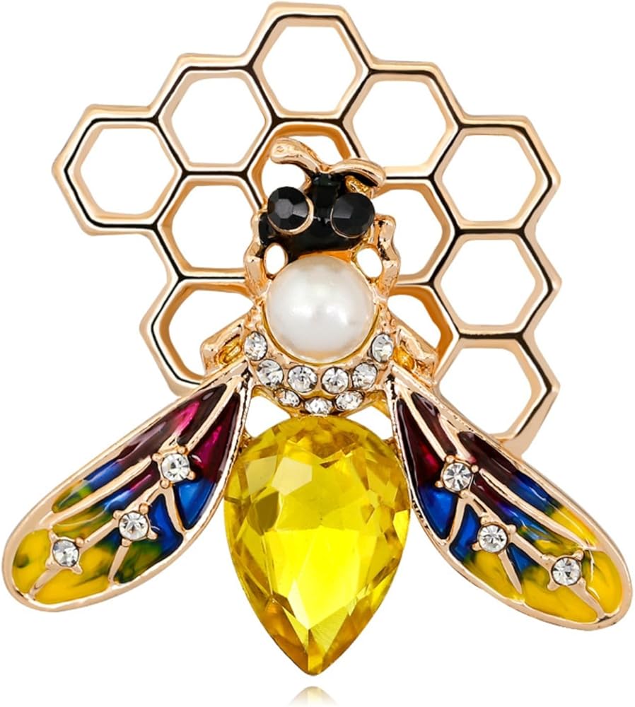 Introducing our beautiful collection of brooches and pins, including 6 different styles of vintage pins, bag pins, women's brooches and pins, and men's hat pins. Our Bee Pin Bee Brooch is a true standout, showcasing a vintage honeycomb design and a charming cartoon personality accent. Made from premium enamel crystal oil drop alloy material, this brooch features a stunning rhinestone insect pin and oil drop color finish, adding a touch of glamour and sophistication to any outfit.