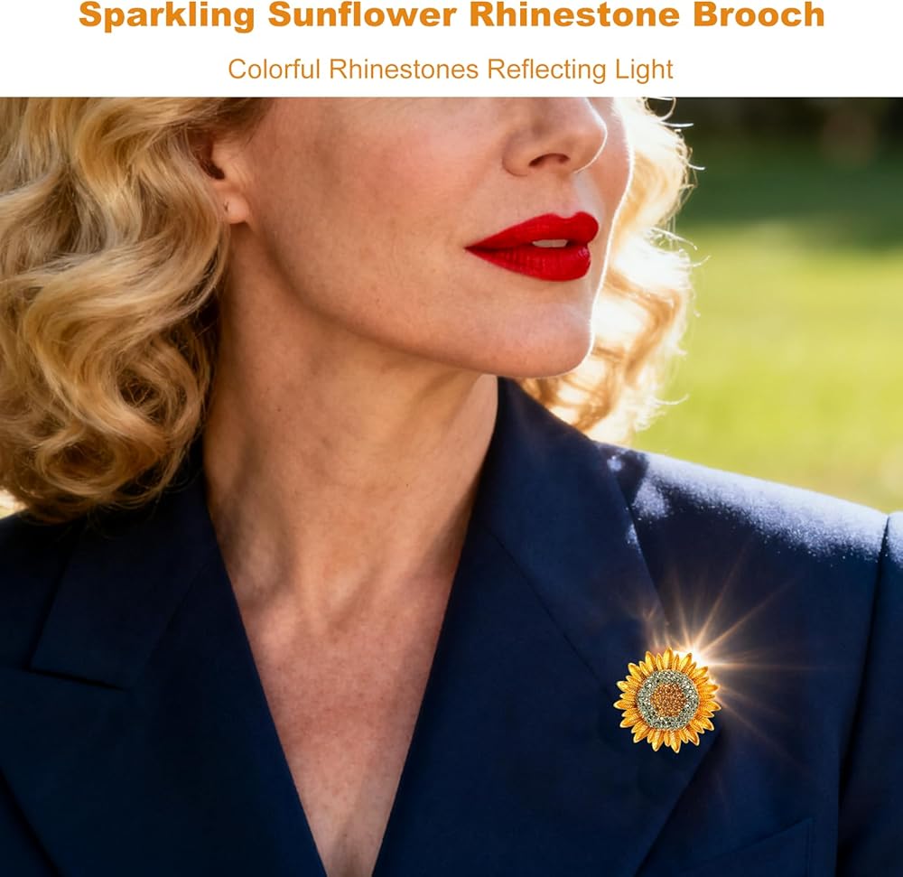 Elegant Sunflower Brooch: Designed with colorful rhinestones, this sunflower brooch shines brilliantly under the light, making it a standout accessory for daily wear or special occasions