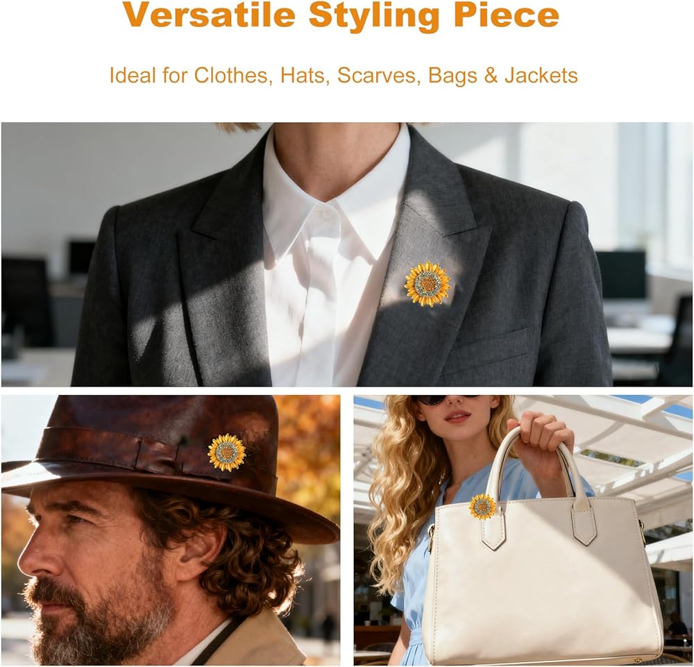 Symbol of Positivity: Wearing a sunflower pin reflects confidence, optimism, and a bright attitude toward life, making it a meaningful fashion choice