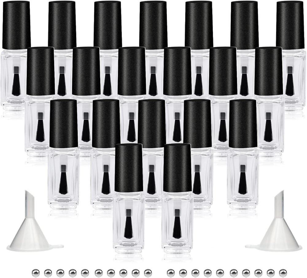 • [Package Content]: 20 x 5ML Empty Nail Polish Glass Bottles with Brush, 20 x Mixing Balls, 2 x Funnel