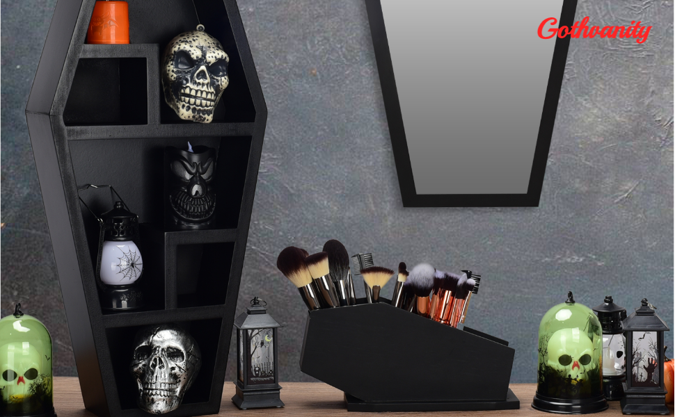 💀جودة عالية - إنه مصنوع من خشب متين وعالي الجودة مما يضمن متانته وأمانه من الإصابة والكسر. قد يكون هناك بعض الشذوذات القوطية الأخرى، مثل مرآة التابوت ورف التابوت. يوصى بشدة بجمعهم معًا. سوف يكملون مظهرك وسيكونون دائمًا ملفتة للنظر.