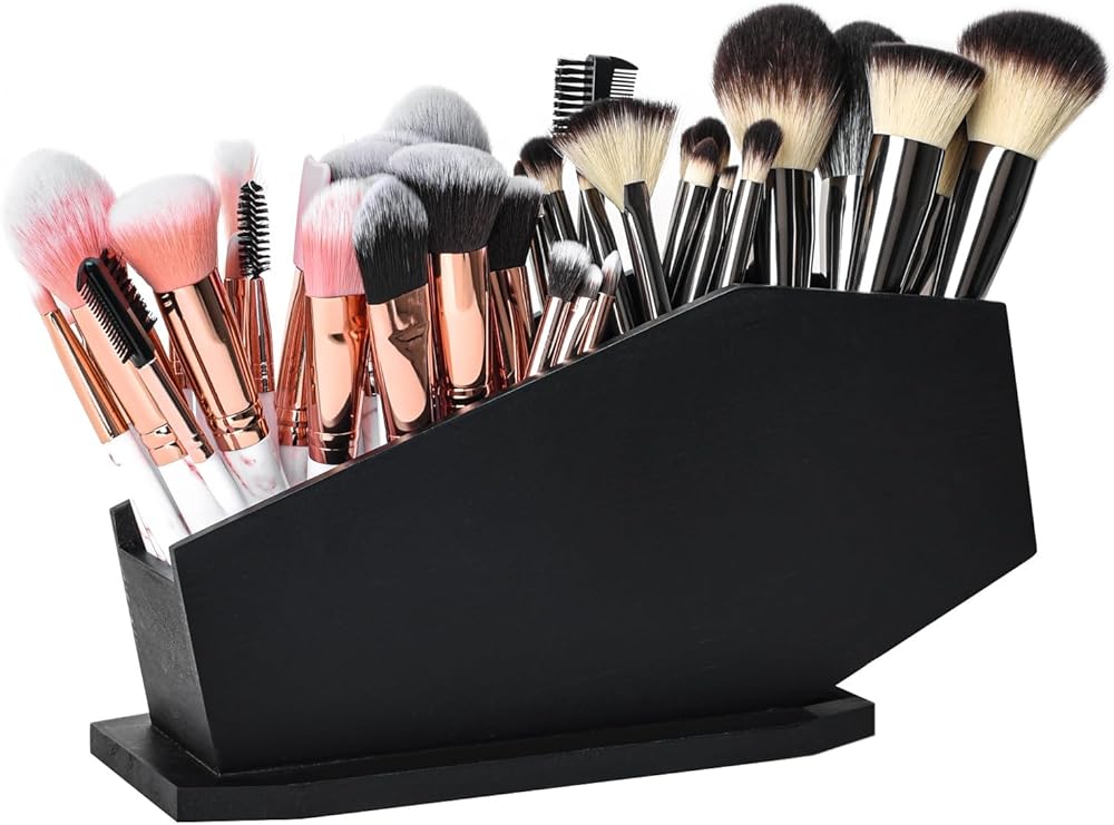 💀سعة كبيرة - يتميز حامل فرشاة التابوت بـ 4 مساحات لتخزين كمية مذهلة من فرش المكياج ومستحضرات التجميل الأخرى بينما يأخذ فقط 10 بوصات من مساحة الزينة الخاصة بك. يناسب 40-60 فرشاة مكياج حسب حجمها.