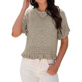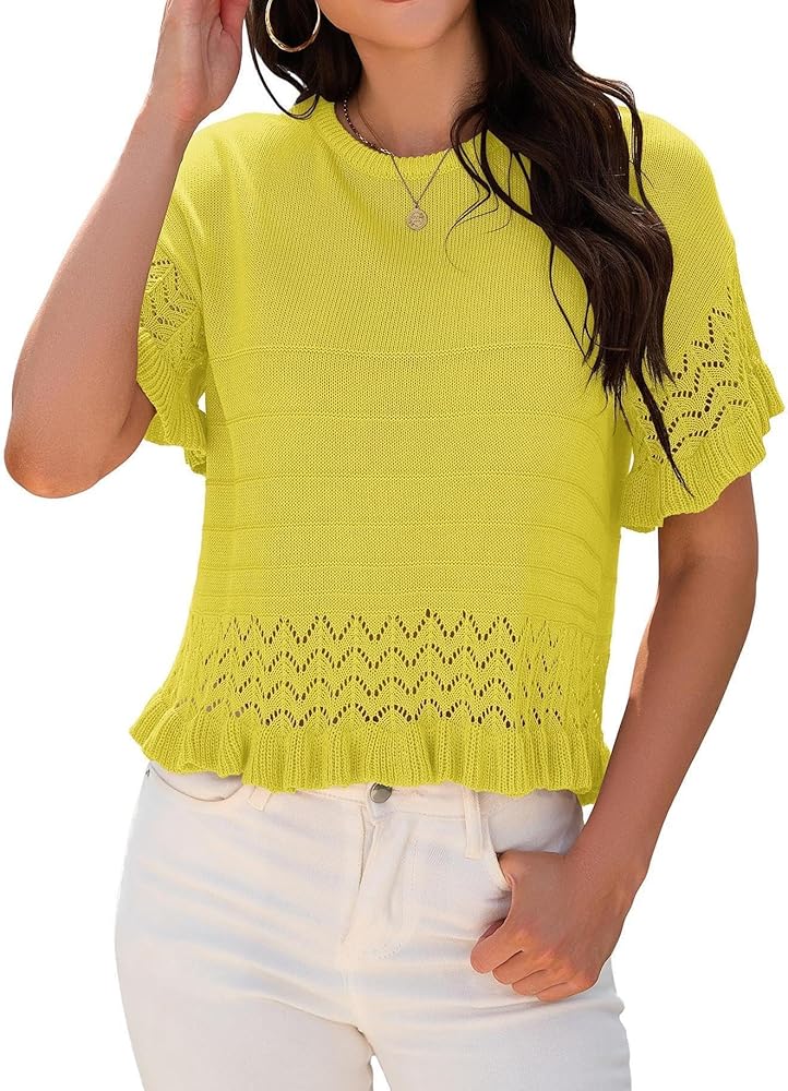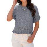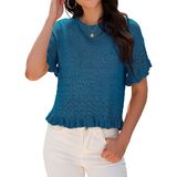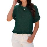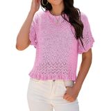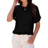 سترة نسائية قصيرة الأكمام من TASAMO سترة منسوجة برقبة دائرية بلوفر كروشيه مع حاشية مكشكشة وبلوزة صيفية مريحة غير رسمية