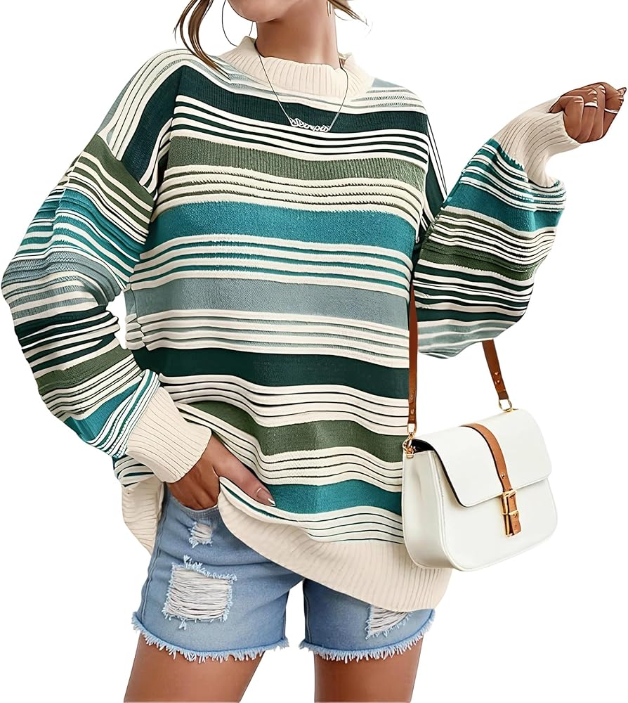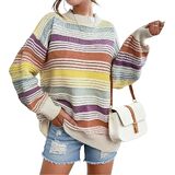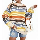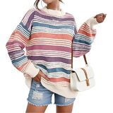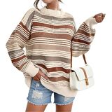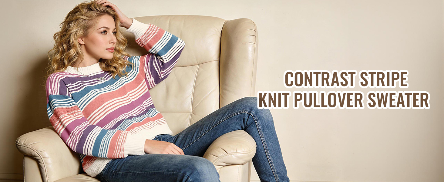 التصميم: تتميز هذه السترة النسائية المخططة ذات الألوان المتعددة بلوحة من الألوان الفاتحة النابضة بالحياة. مع رقبة دائرية وأكمام طويلة وقصة مريحة كبيرة الحجم، هذه السترة المريحة مثالية لفصلي الخريف والشتاء.