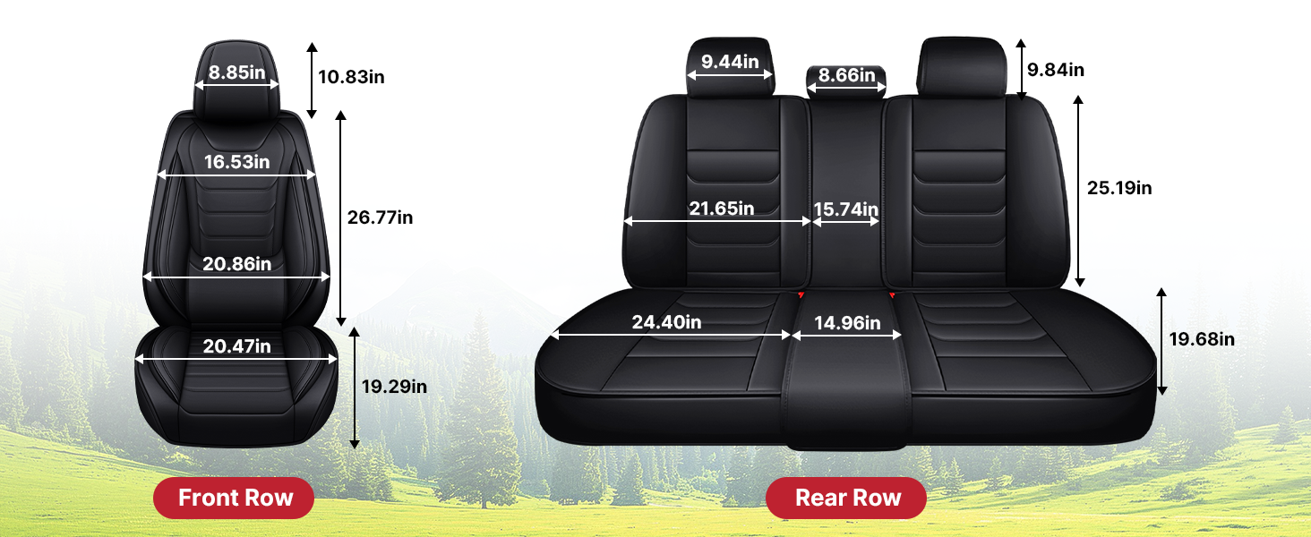 • 【تنظيف مقاوم للعائلة وبدون مجهود】مصنوع من أغطية مقاعد جلد نابا الفاخرة المقاومة للبقع والمقاومة للماء، اضحك من فوضى الحياة العائلية - العصير والزبادي والطين وأقلام التلوين والمزيد. ببساطة امسحها بقطعة قماش مبللة في ثوانٍ؛ لا حاجة إلى تنظيف قاسي على الإطلاق. حافظ على مقاعدك تبدو جديدة تمامًا.