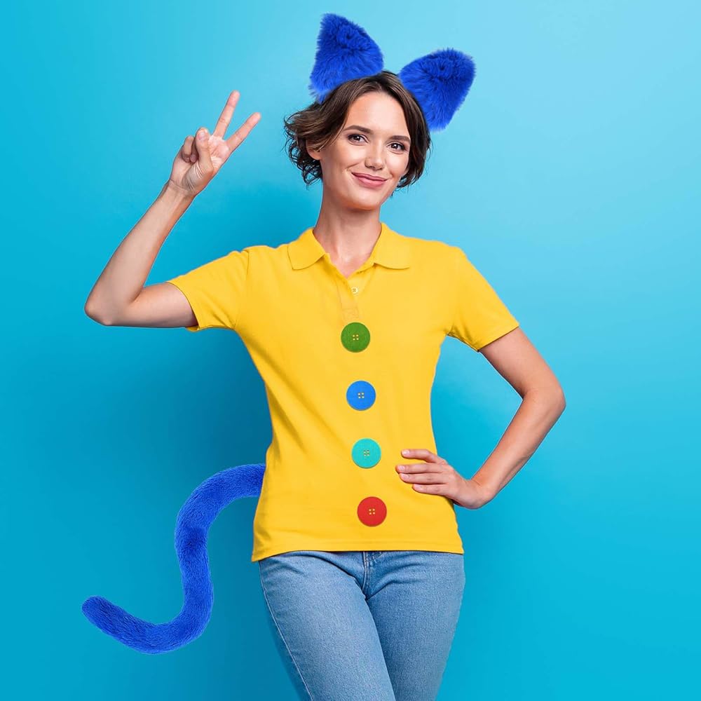 • 【Great Value Package】This costume set includes all the essentials to become the beloved cat character from storybooks.you will receive 1 piece of blue ears headband,1 piece of yellow cat sunglasses,a furry blue tail and a pastable heart shaped fabric patch,ideal combination for you to wear, you can wear them on various party and it will make you eye catching in the crowd,you can also share them with your friends.