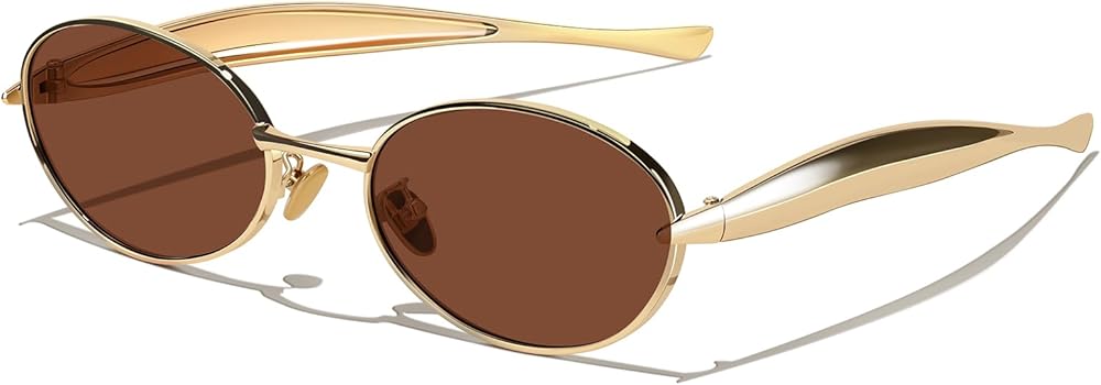 نظارة شمسية كلاسيكية بيضاوية للنساء والرجال، 2025 ذهبي معدني من السبعينيات، نظارات شمسية عصرية من التسعينيات in Kuwait