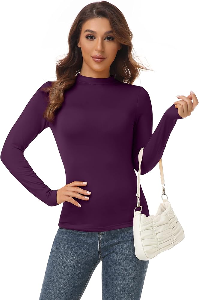 هذه البلوزة النسائية ذات الياقة المدورة، خفيفة الوزن، وأكمام طويلة، مناسبة تمامًا وناعمة للطبقات، تعمل بشكل رائع تحت الملابس الرسمية والسترات والسترات والمعاطف، ستكون قطعة أساسية في خزانة ملابسك
