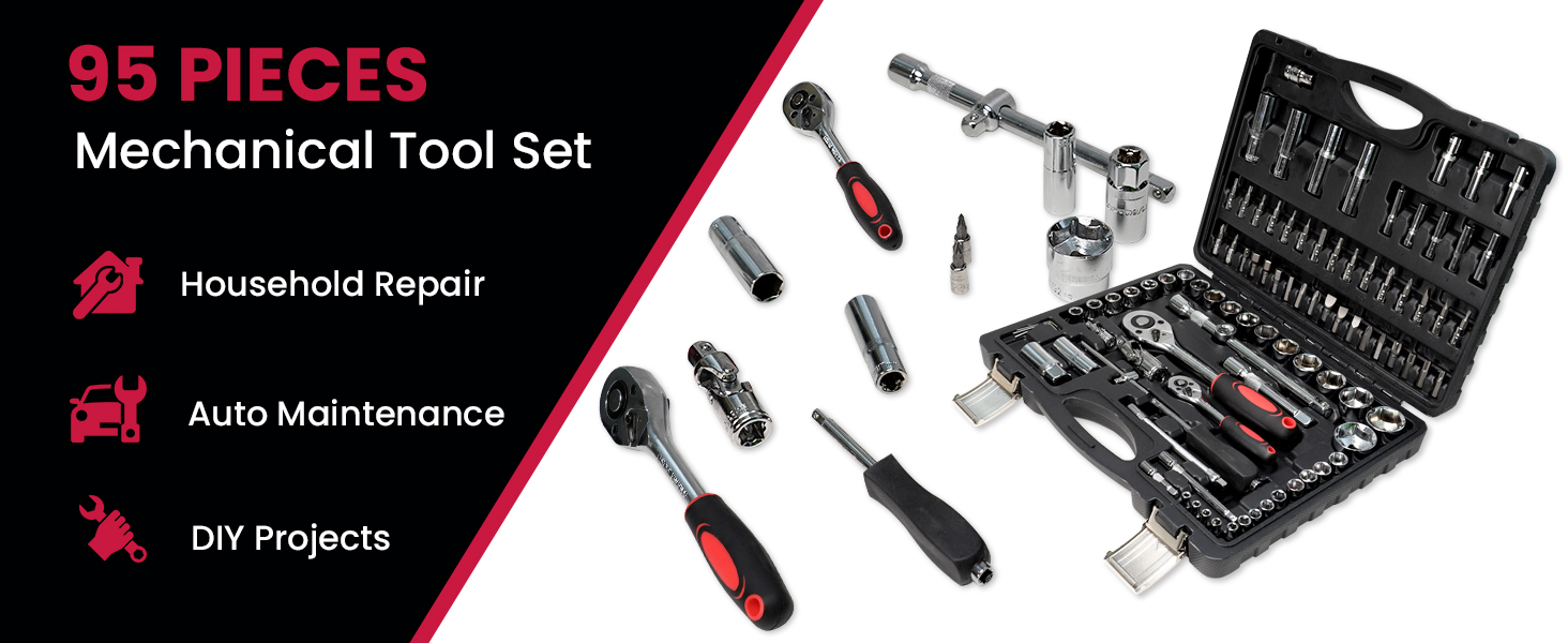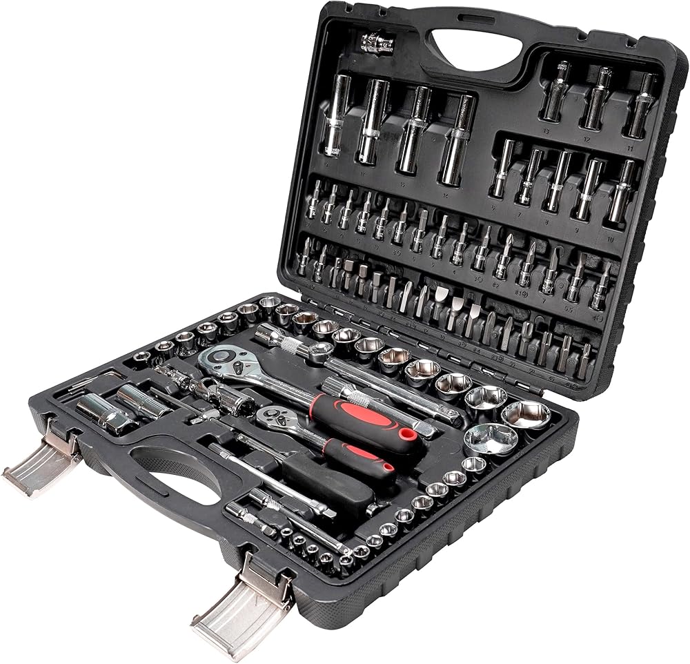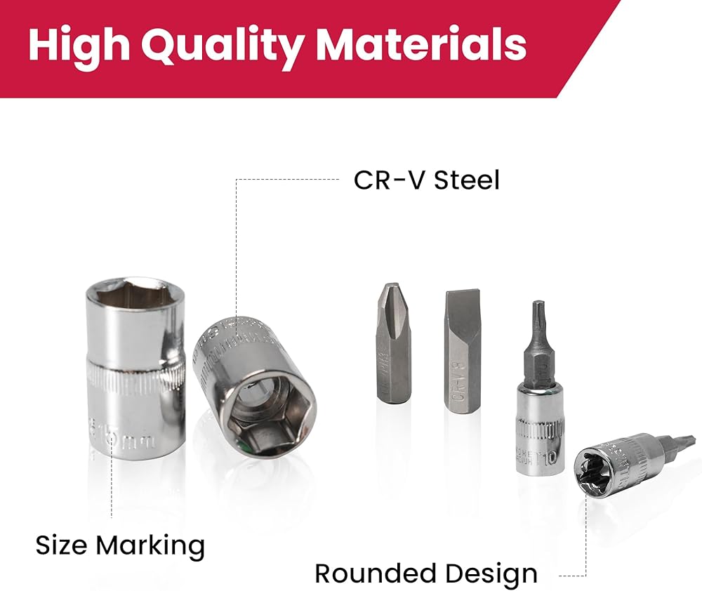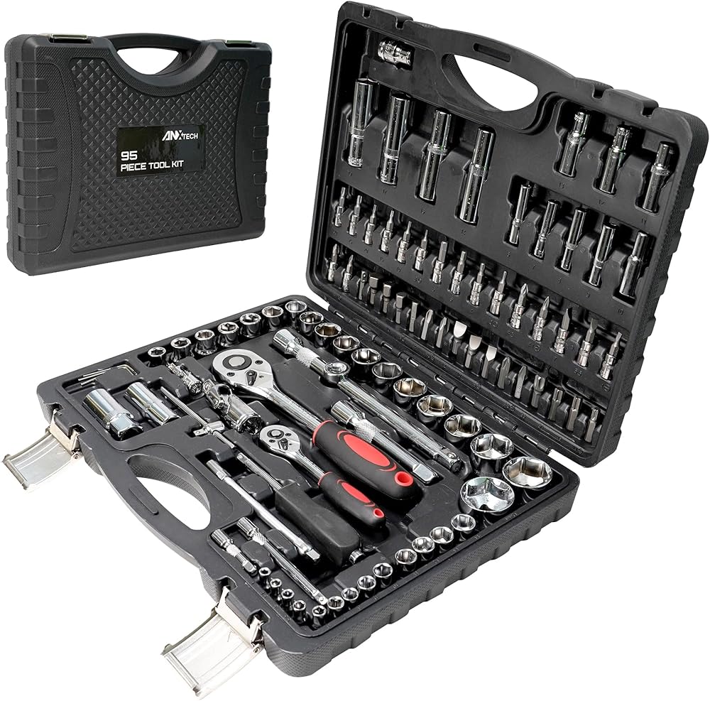 تنوع شامل للأدوات مكون من 95 قطعة: يتميز الاختيار الشامل المكون من 95 قطعة بـ 45 مقبسًا ومآخذ 32 بت وأنظمة محرك مزدوجة 1/2 بوصة و1/4 بوصة لتوفير حل شامل لإصلاح السيارات وتغيير الزيت وعمل نظام الفرامل، مما يزيل الإحباط الناتج عن القطع المفقودة ويضمن حصولك على الأداة الدقيقة لتجميع الأثاث أو صيانة الآلات الزراعية بأقصى قدر من الكفاءة.