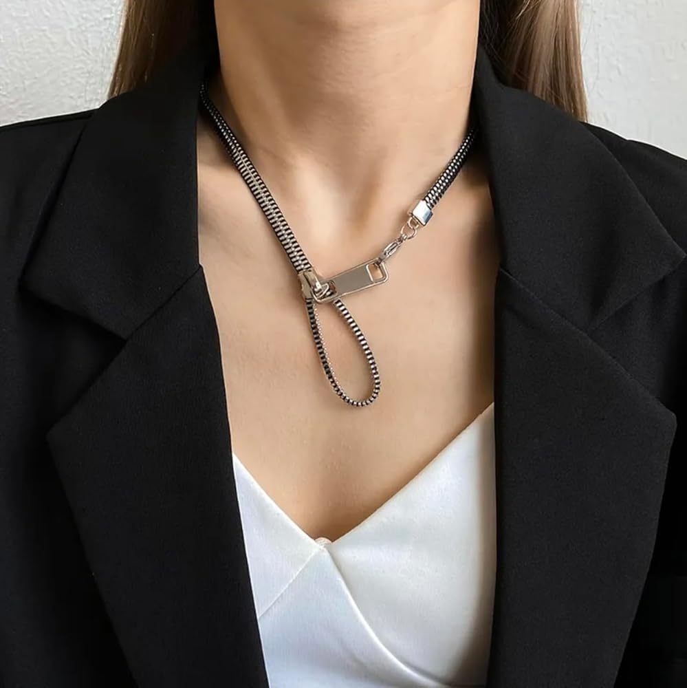 UNIQUE ZIPPER DESIGN: Features an eye-catching functional zipper pull pendant that adds an edgy, industrial-chic aesthetic to any outfit, perfect for making a bold fashion statement