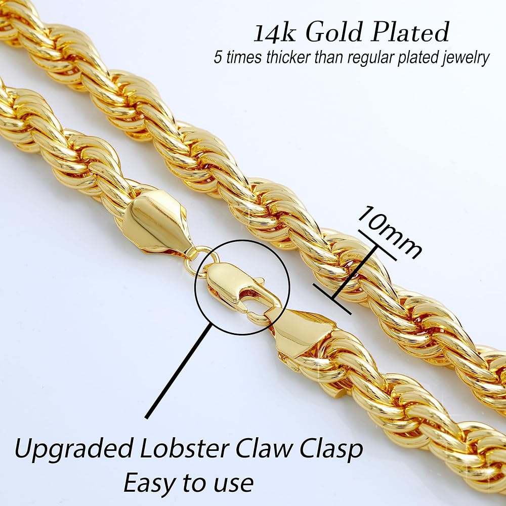 سلسلة حبل ذهبية للرجال: سلسلة حبل ملتوية كلاسيكية بأسلوب جريء وأنيق - خالدة ومطلوبة دائمًا. توفر سلسلة الحبال بعرض 10 ملم مظهرًا مثاليًا للرجال الذين يحبون الهيب هوب والمجوهرات الفاخرة