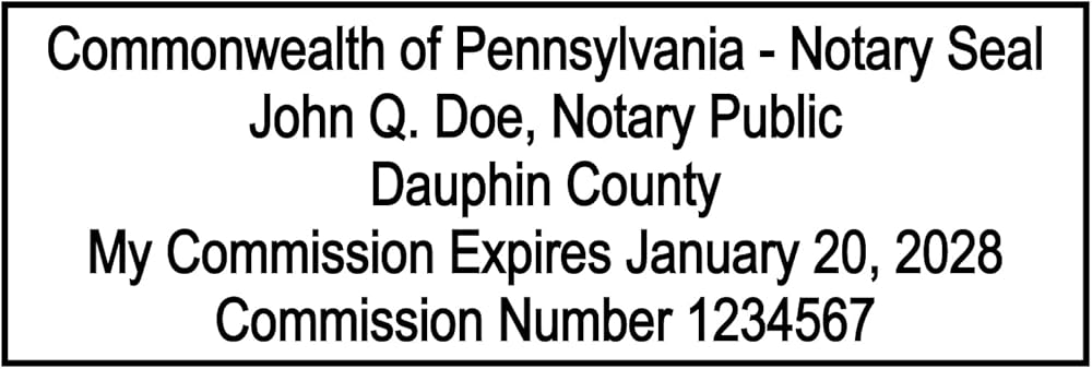 • Your stamp will be made to Pennsylvania state regulations
