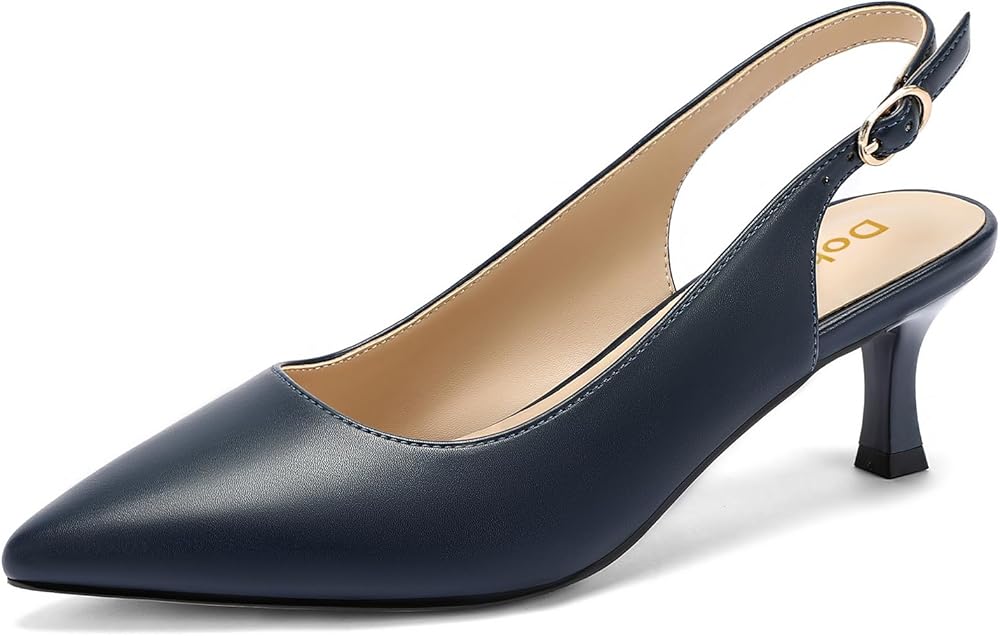 Step into effortless elegance with the DOBOLIN Women's Kitten Heel Slingback Pumps—where timeless style meets everyday comfort. Designed for modern women, these pointed toe dress pumps add a refined touch to any outfit.