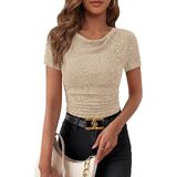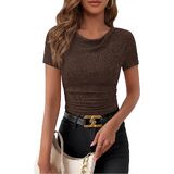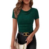 التصميم: يتميز برقبة متدلية أنيقة مع نسيج محبوك مضلع، وصورة ظلية ملائمة نحيفة، وتفاصيل مكشكشة تخلق نمطًا عصريًا ومثيرًا. تصميم بأكمام قصيرة وطول قصير يوفر مظهرًا عصريًا وعصريًا مثاليًا للارتداء كطبقات أو الارتداء بمفرده