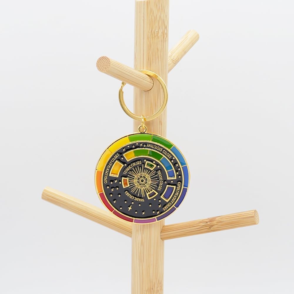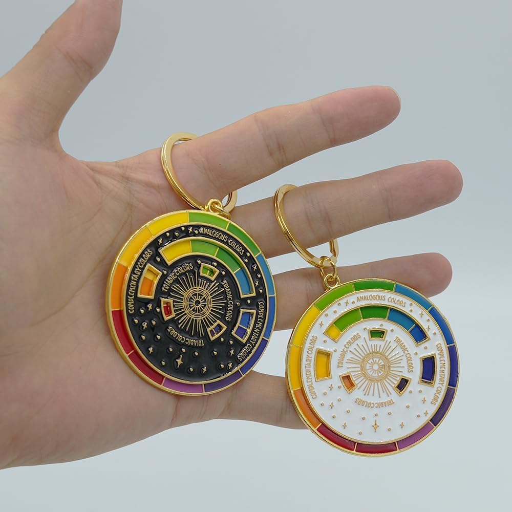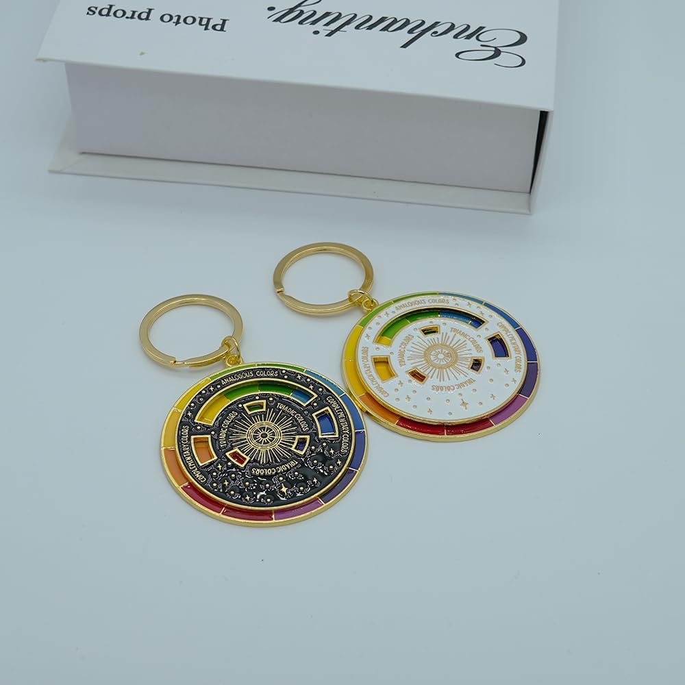 تصميم فريد - تتميز سلسلة المفاتيح بأشكال عجلة ملونة دوارة واقعية، مثالية لعشاق الفن.