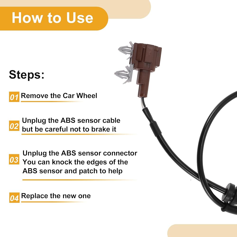 كيفية الاستخدام: سهولة التركيب. قم بإزالة عجلة السيارة، وافصل مستشعر ABS وموصل المستشعر، ثم استبدل مستشعر ABS الجديد.