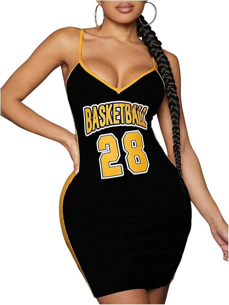 • Athletic Dress, Jersey Dress, Sexy Bodycon Dress, Contrast Trim, Color Block, Letters, Numeric Print, Adjustable Spaghetti Strap, Open Back, Sleeveless