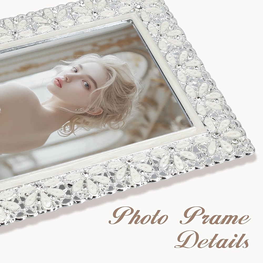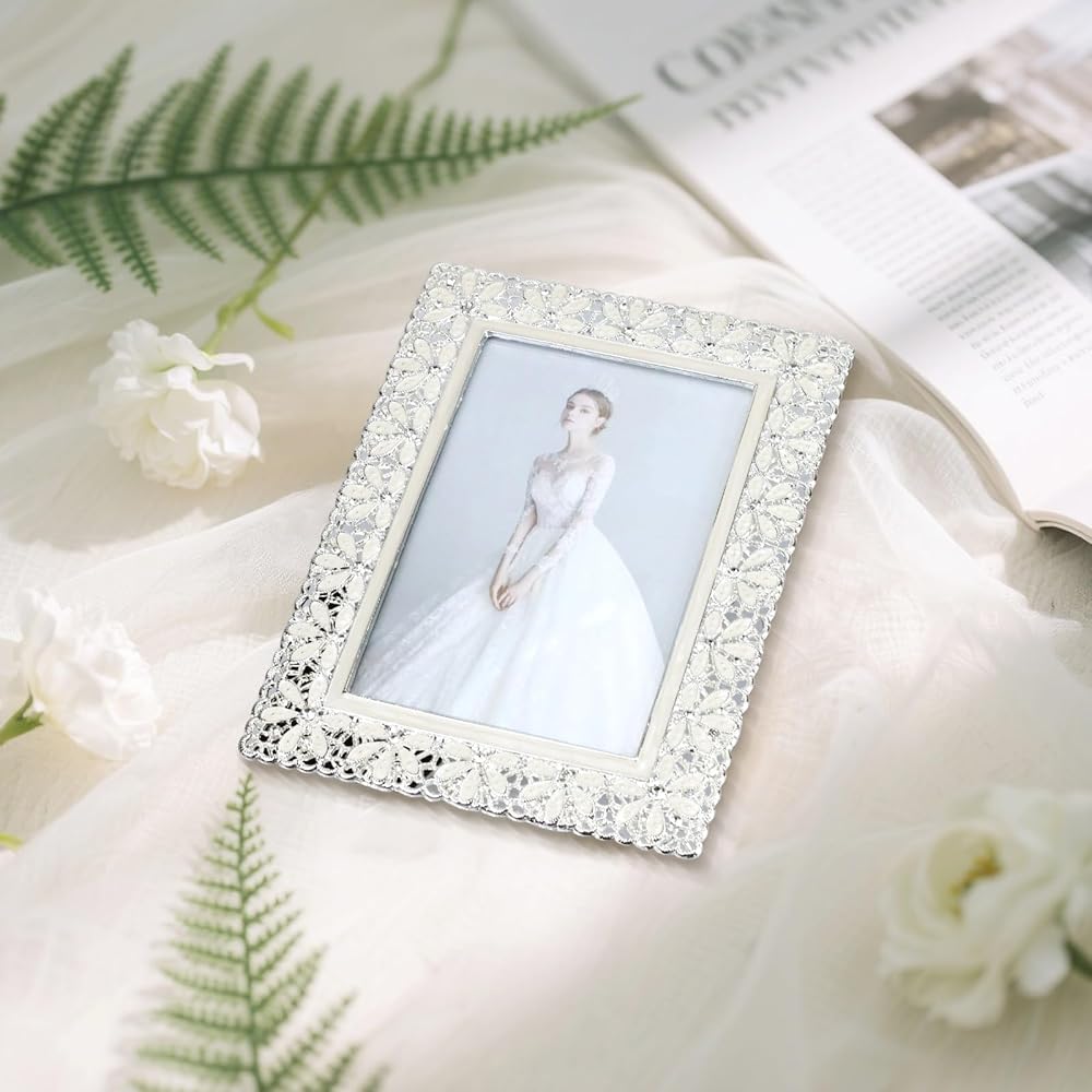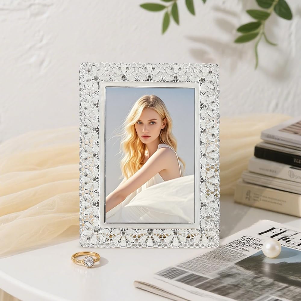 【تصميم أنيق】 اعرض لحظاتك العزيزة في إطارات الصور المعدنية المذهلة مقاس 4 × 6، المزينة بزخارف الزهور المجوفة الرقيقة والزخارف الكريستالية المتلألئة لإضفاء لمسة من الرقي.