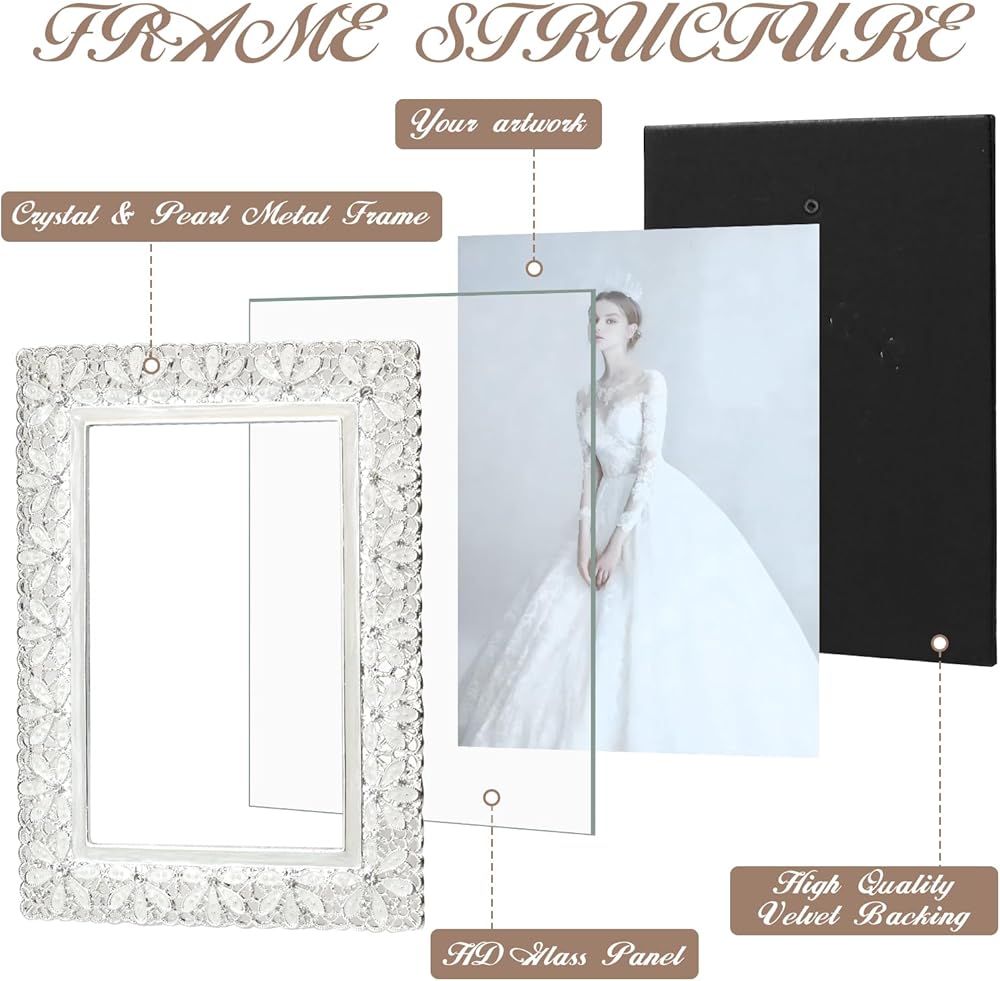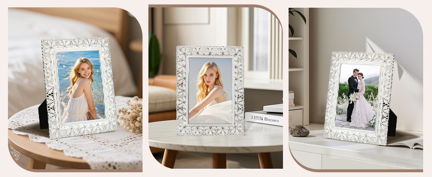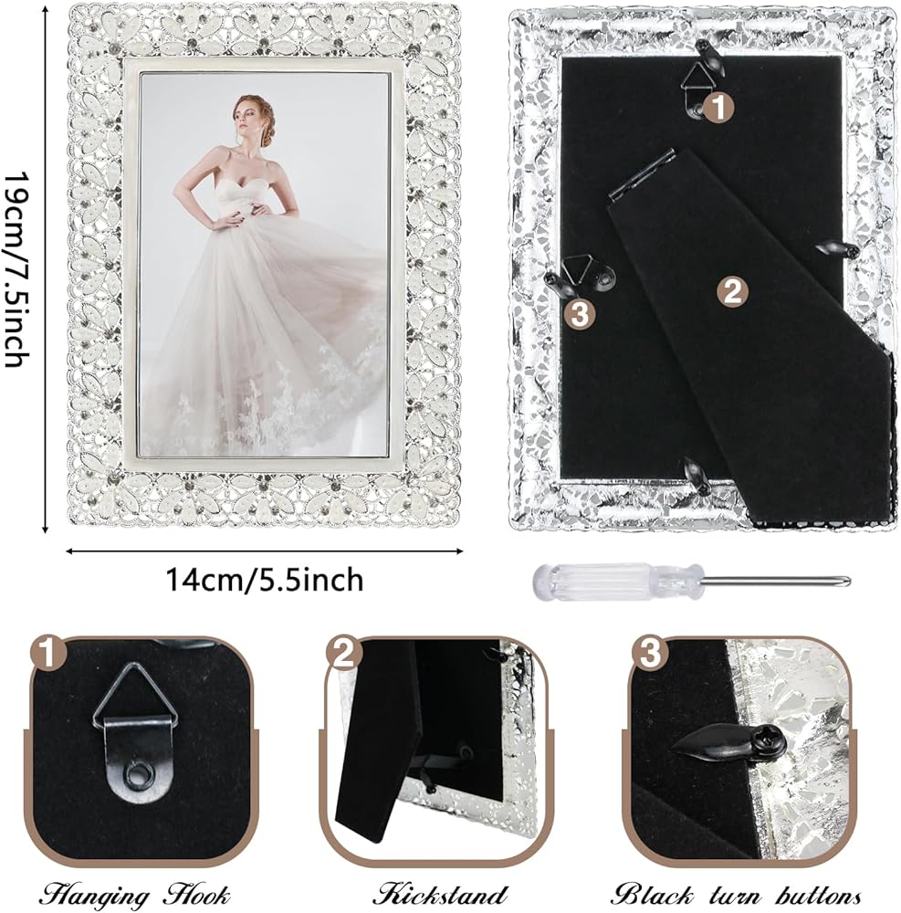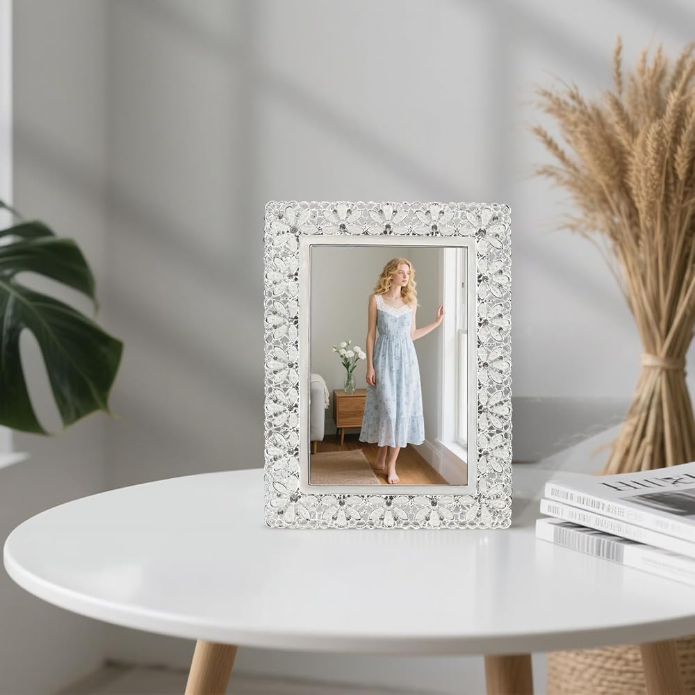 【تصميم أنيق】 اعرض لحظاتك العزيزة في إطارات الصور المعدنية المذهلة مقاس 4 × 6، المزينة بزخارف الزهور المجوفة الرقيقة والزخارف الكريستالية المتلألئة لإضفاء لمسة من الرقي.