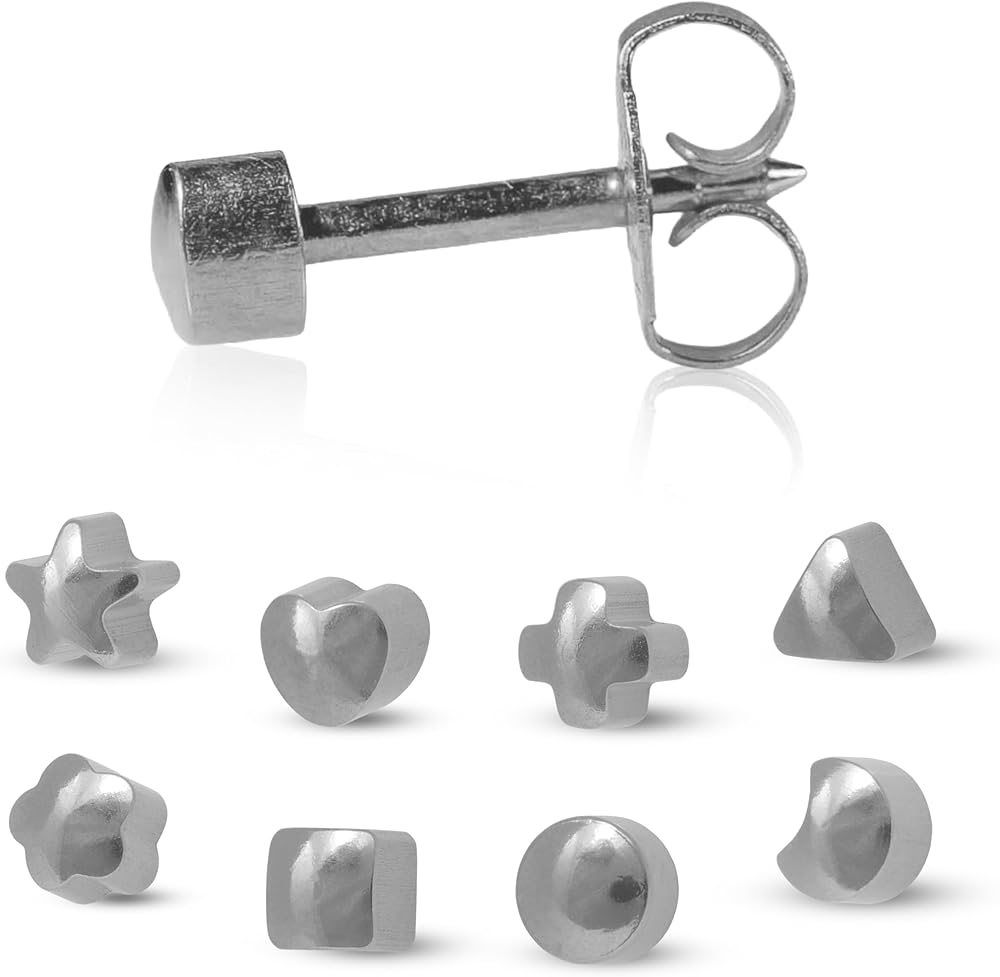 أشكال متنوعة - مسامير من الفولاذ المقاوم للصدأ مقاس 4 مم توفر مجموعة متنوعة من التصميمات المسطحة مثل القلب والنجمة والدائرة والمثلث للارتداء اليومي في الثقب.