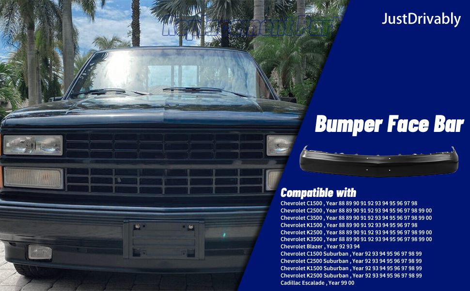قطع غيار المصد الأمامي شريط الوجه من الفولاذ الأسود المتوافق مع شيفروليه المتوافقة مع شاحنة بيك اب C/K 1500 2500 3500 بليزر سوبربان تاهو يوكون إسكاليد 1988-2000