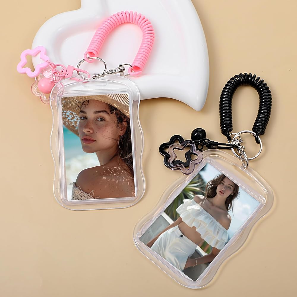 • Package Includes: The photocard holder keychain set comes with 2 adorable photo card holders, a spring cord, and a star bell pendant. Simply insert your favorite photo card into the transparent sleeve and carry your cherished memories anywhere