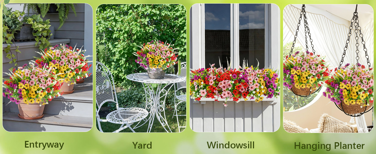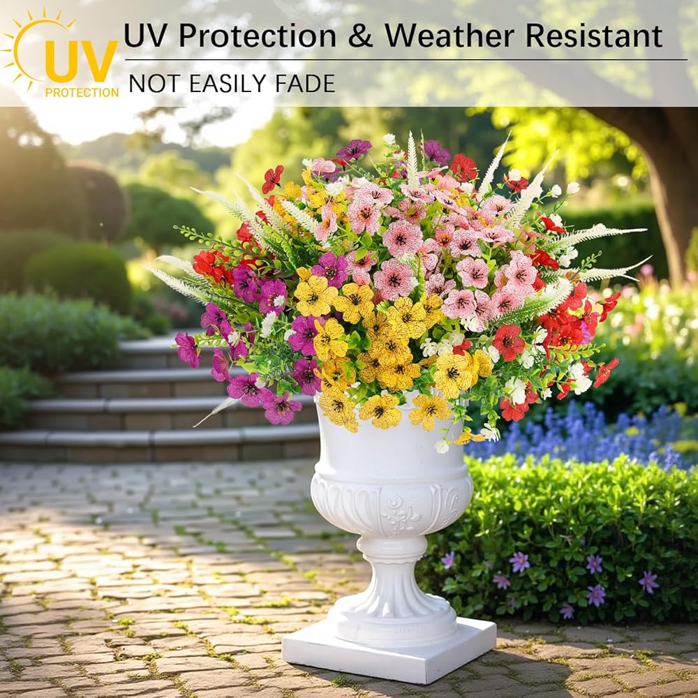 لا تبهت، ومقاومة للأشعة فوق البنفسجية ومقاومة للطقس، مصممة للاستخدام في الهواء الطلق، هذه الزهور الاصطناعية مقاومة للماء وواقية من الشمس ومقاومة للأشعة فوق البنفسجية. ليس من السهل أن تتلاشى ويمكن أن تتحمل الشمس الكاملة والأمطار الغزيرة والرياح، وتحافظ على لون نابض بالحياة وجمال طبيعي طوال العام دون سقاية أو صيانة.