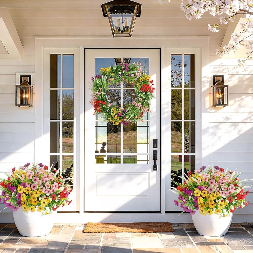 مثالي للديكور الخارجي والداخلي، مثالي للشرفات، والممرات، والشرفات، وصناديق النوافذ، والساحات الأمامية، والحدائق، والأواني، والمزارعين المعلقين، والشرفات، وعتبات النوافذ. مناسبة أيضًا لحفلات الزفاف وأعياد الميلاد والأماكن التذكارية وديكور بيت المزرعة وديكورات المنزل، مما يضفي سحرًا دائمًا على أي مساحة.