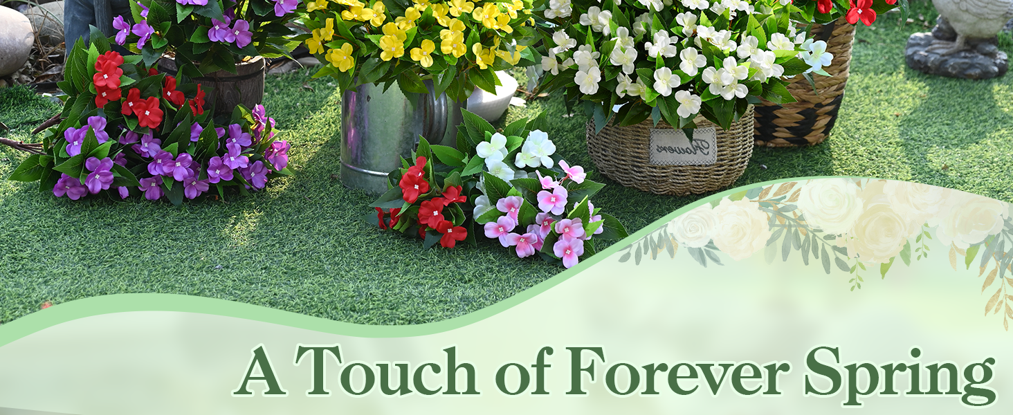 متانة في جميع الأحوال الجوية ومقاومة للبهتان: مصممة على شكل زهور صناعية خارجية مقاومة للأشعة فوق البنفسجية، فهي مقاومة للماء وثابتة الألوان ومصممة لتحمل الشمس والمطر والرياح - مما يحافظ على مظهرها النابض بالحياة موسمًا بعد موسم دون أن يبهت أو يتآكل.