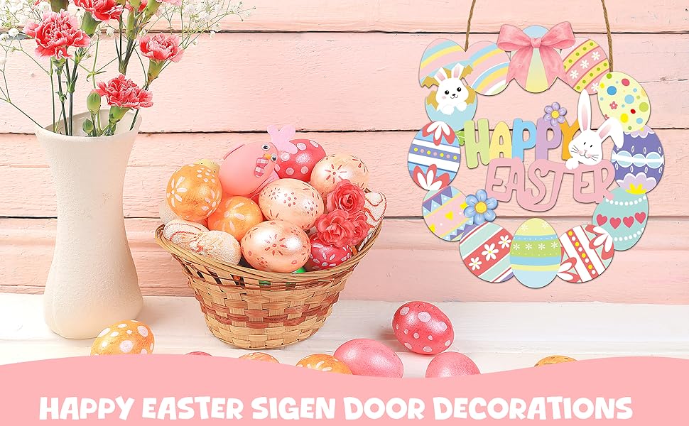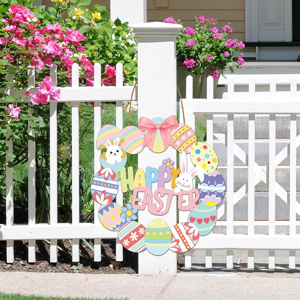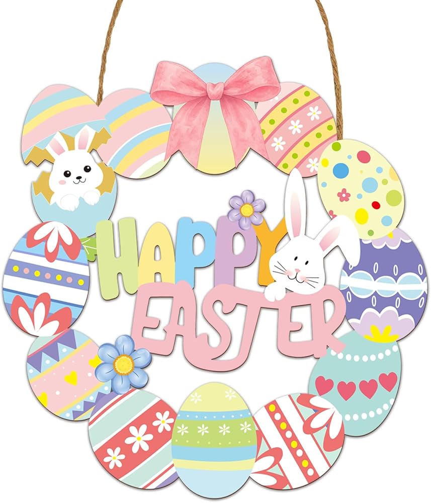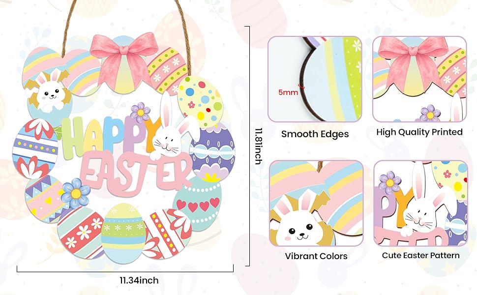 • لافتة باب عيد الفصح - تتميز لافتة إكليل الخشب الخشبية المكونة من قطعة واحدة من بيض عيد الفصح بألوان زنبركية نابضة بالحياة وحبل تعليق مرفق مسبقًا لتزيين عيد الفصح الفوري على الأبواب أو الجدران أو النوافذ.